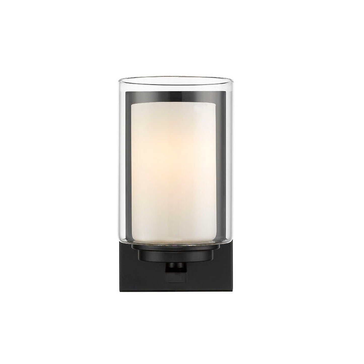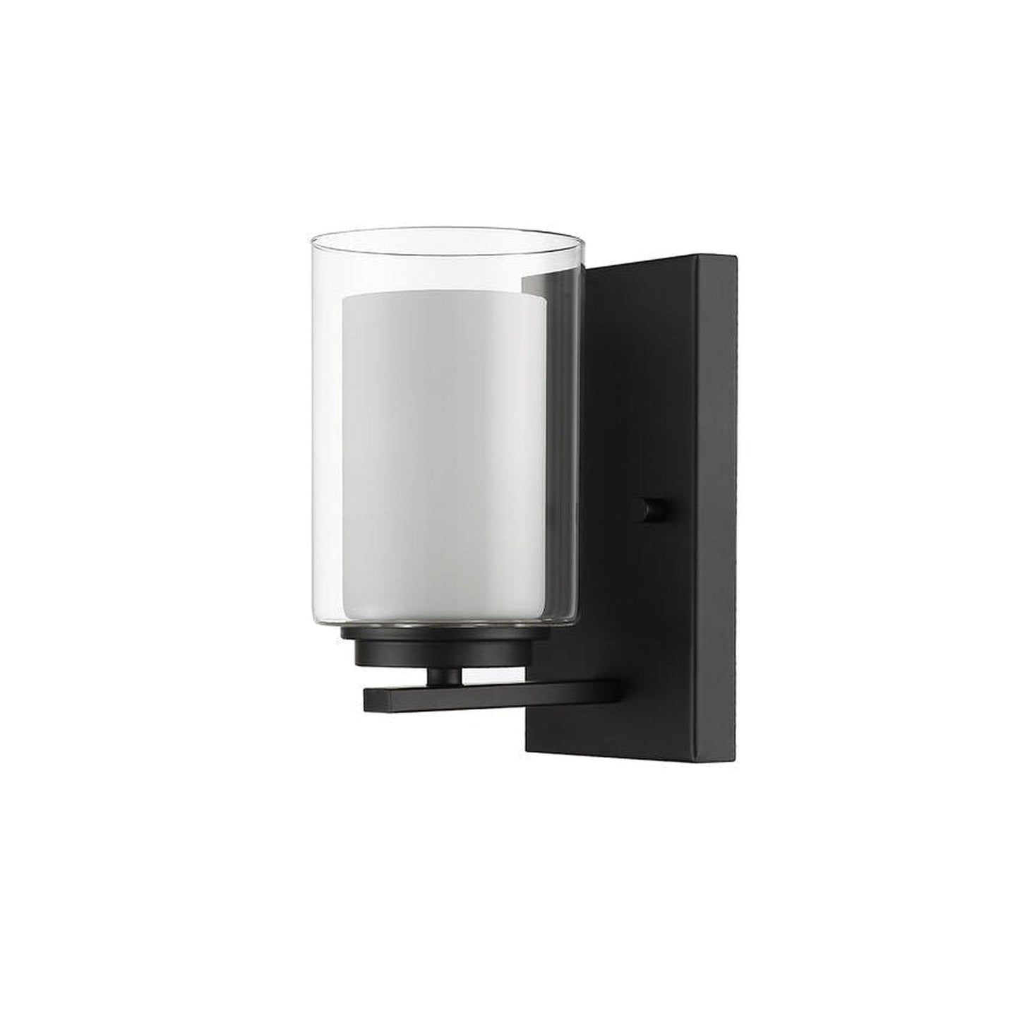 Z-Lite Willow 5" 1-Light Matte Black Wall Sconce With Clear Matte Opal Glass Shade